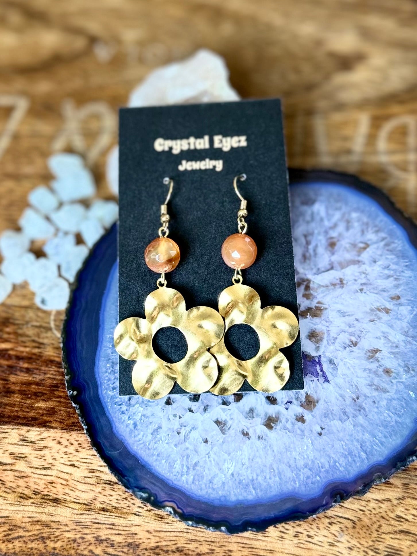 Carnelian Wavy Brass Flower Earrings