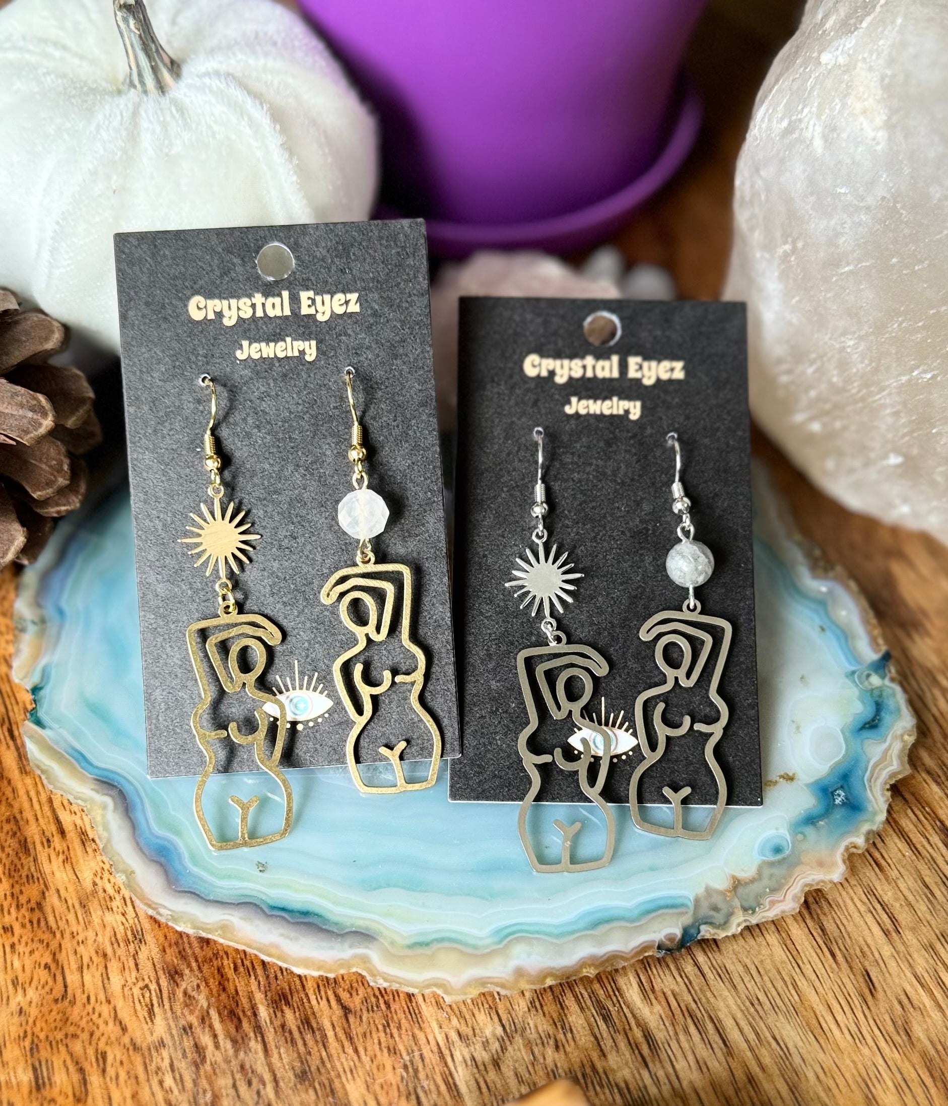 Nickel free and hypoallergenic. Choice of Rose Quartz and brass or Labradorite and silver.